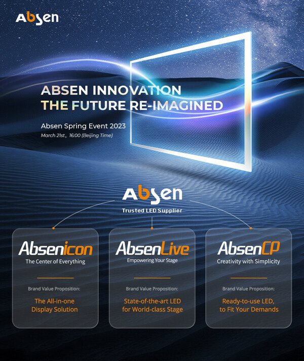 SHENZHEN, China, March 22, 2023 /PRNewswire/ — Absen, one of the world’s leading LED display brands, held its Spring Launch Event 2023 on March 21st, showcasing the brand-new category brands and a range of new LED technologies, solutions, and products. Industry professionals and media representatives worldwide gathered to witness Absen’s unveiling of its featured category brands – AbsenLive, Absenicon, and AbsenCP.