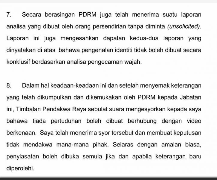“This police also received an analysis report of the video from a private individual who also stated that no identification could be done based on facial recognition,” he said, in a statement today.