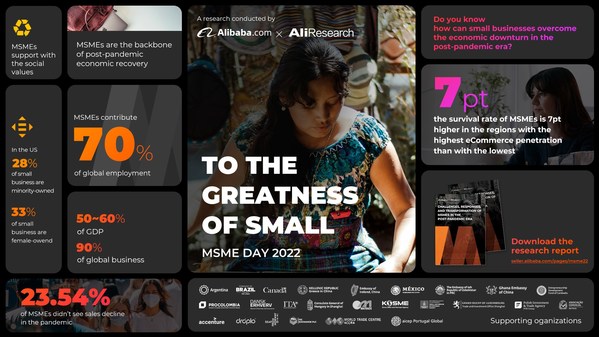 GENEVA, June 27, 2022 /PRNewswire/ — To commemorate MSME Day 2022 on June 27, Alibaba.com and AliResearch Institute, Alibaba Group’s research arm, published the report “Challenges, Responses, and Transformation of MSMEs in the Post-Pandemic Era”. The report takes a multi-focal look at how Micro- Small- and Medium-sized Enterprises (MSMEs) fared through the pandemic to provide a better understanding of what action businesses took in order to survive, revealing key findings that include: