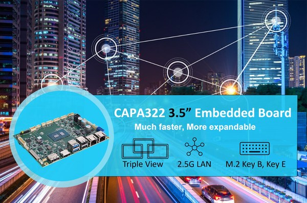 TAIPEI, Aug. 17, 2022 /PRNewswire/ — Axiomtek – a world-renowned leader relentlessly devoted to the research, development, and manufacturing of innovative and reliable industrial computer products of high efficiency – is pleased to introduce the CAPA322, an Intel® Atom-based 3.5-inch embedded board featuring two M.2 slots (Key E and Key B), a 2.5GbE LAN port and triple view display. The single-board computer is upgraded tremendously in connection speed and expandability to meet various demands for expansion and connectivity in IoT applications.
