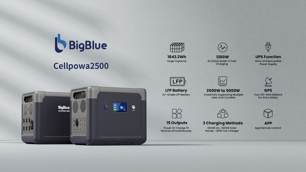 SHENZHEN, China, April 19, 2022 /PRNewswire/ — As the leader in the field of portable power station solutions, BigBlue Energy Inc has officially announced its newest Kickstarter campaign: BigBlue Cellpowa2500 All-In-One Emergency Power Source. This emergency portable power source is their smallest 1800Wh LiFePO4 Power Station, used for power outages and outdoor adventures. With BigBlue Cellpowa 2500, customers can enjoy the convenience of a high-powered portable station to back up their energy needs for up to three days.