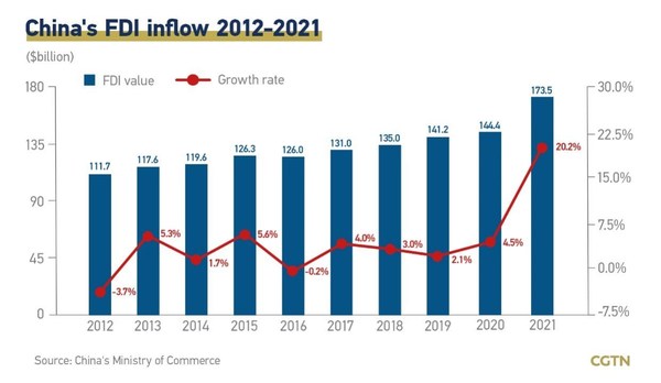 China is leading the world in foreign capital inflows. Its global share of FDI in the first quarter (Q1) of 2022 was 19.5 percent, ranking first in the world, according to the Organization for Economic Cooperation and Development.
