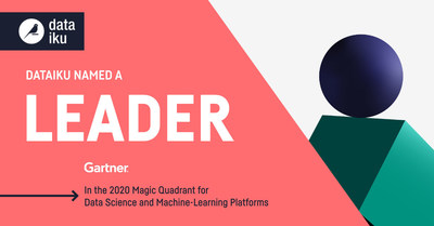 NEW YORK, Feb. 18, 2020 /PRNewswire/ — Today Dataiku, one of the world’s most advanced Enterprise AI platforms, was named a Leader in the Gartner 2020 Magic Quadrant for Data Science and Machine-Learning Platforms. Dataiku credits its placement to its completeness of vision and ability to execute. This marks the fourth consecutive year of Dataiku’s inclusion in the report and the first year in the Leaders quadrant.