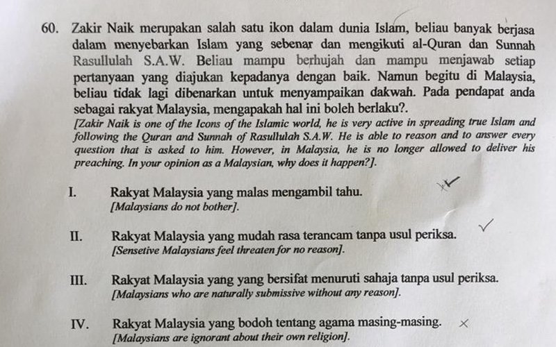 PUCHONG: Netizens bemoaned a university examination question that appears to praise controversial Islamic preacher Zakir Naik by praising him and criticising Malaysians at large.