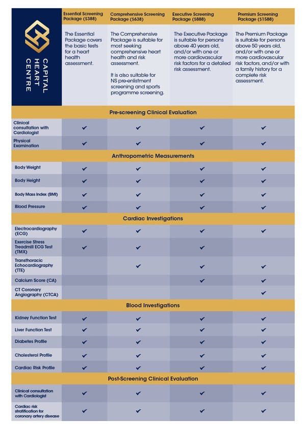 • Comprehensive heart health and risk assessment. • Also suitable for NS pre-enlistment screening and sports programme screening.