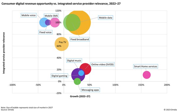 Consumer digital revenue opportunity vs. integrated service provider relevance 2022-27