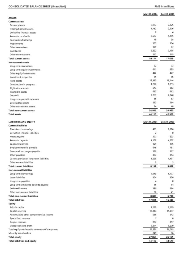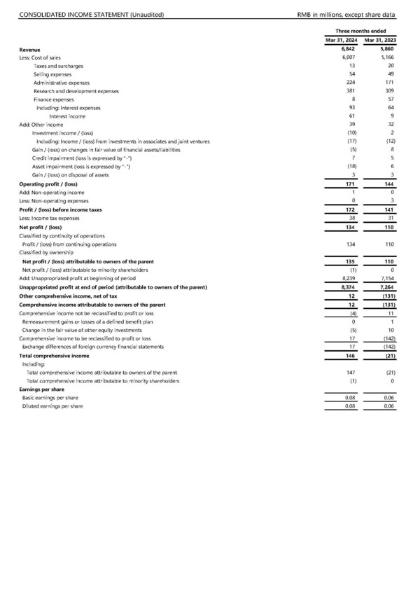 - Earnings per share was RMB 0.08, as compared to RMB 0.06 in Q1 2023