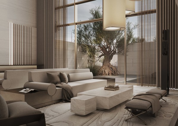 At the heart of the project lies The Park, a lushly landscaped space across 300,000 square feet for residents to recharge and socialise, shaded by thousand-year-old olive trees sourced globally as reminders of Al Gaddah family’s origins as olive tree farmers and plantation owners.