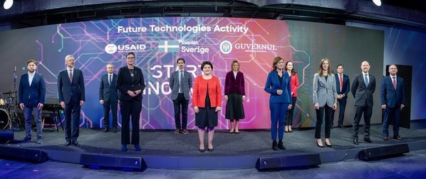 Future Technologies Launch Event, protocol picture of high-level attendees and speakers, including Prime Minister Natalia Gavrilita and USAID Administrator Samantha Power