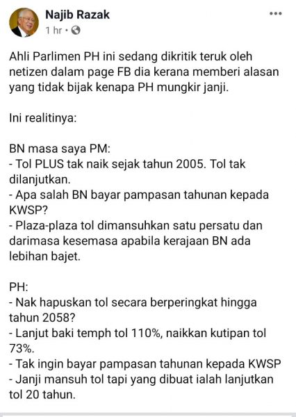 In a Facebook post today, Najib many have criticised the government for its decision and DAP MP Wong Shu Qi is currently under fire in the social media platform for giving lame excuses to defend the government.