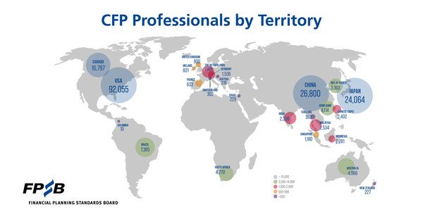 - Japan, with a net increase by the Japan Association for Financial Planners of 969 CFP professionals for a year-end count of 24,064;