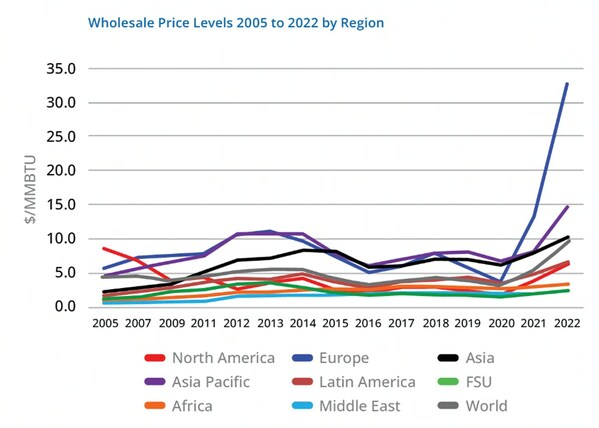2022 was a Milestone Year for Gas as a Global Commodity, and Record-High Prices In Many Regions, as Russian exports to Europe fell sharply.